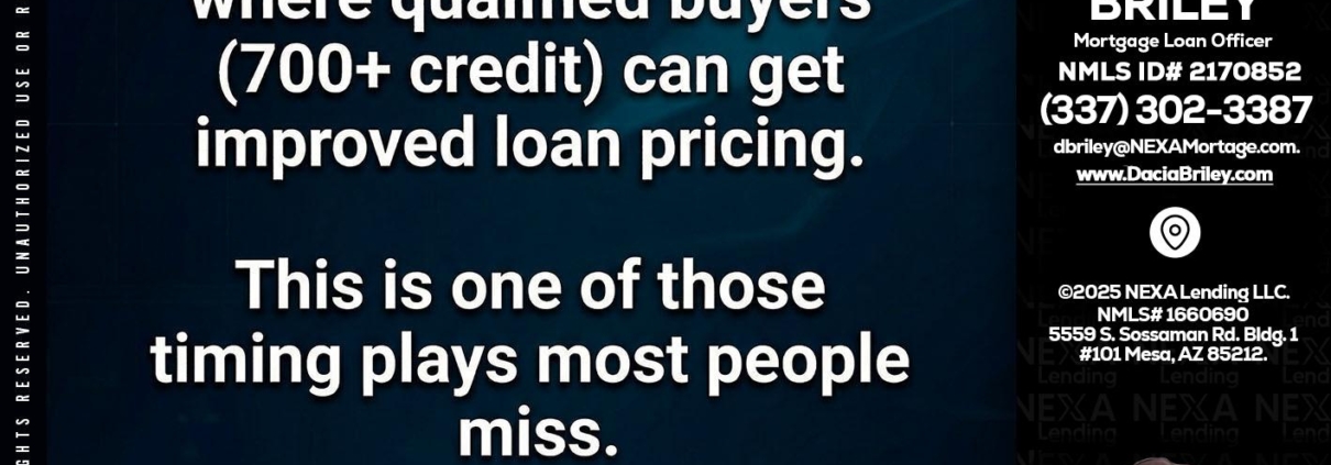 Hi, my name is Dacia Briley. I’m a Loan Officer with NEXA Lending LLC., offering personalized mortgage solutions, fast customized quotes, great rates and service with integrity.
